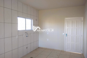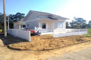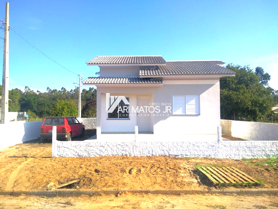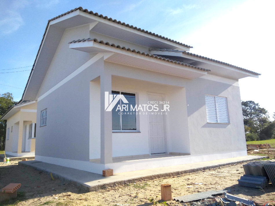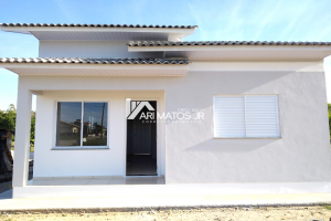Linda casa conjugada de alvenaria, com cobertura em laje reta, à venda no bairro Lagoão, em Araranguá.