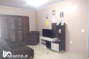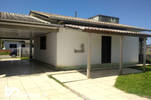São 103m² de área construída. Distribuídos em 02 dormitórios, cozinha e sala integradas, banheiro social, área coberta na frente e nos fundos. Além disso, abrigo coberto na lateral, que pode ser usado como garagem para 02 carros