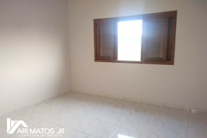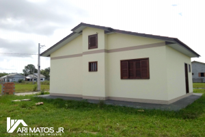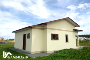 Casa com cobertura de laja e acabamento com massa corrida nas paredes.