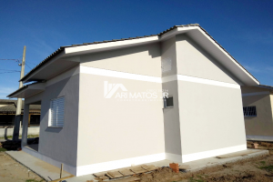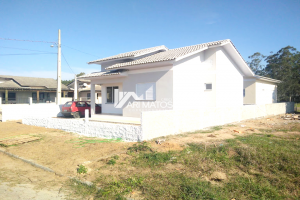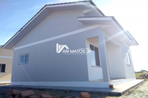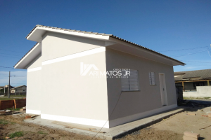 Linda casa conjugada de alvenaria, com cobertura em laje reta, à venda no bairro Lagoão, em Araranguá.