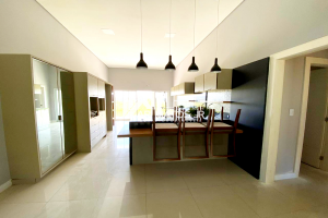 01 Living, com cozinha (com móveis planejados) e sala de jantar;