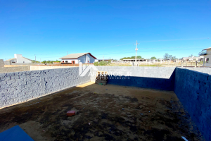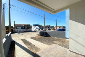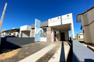 Casas geminadas, LINDAS, com cobertura em laje, garagem com espaço para churrasqueira e com terreno murado. Localizada no bairro Policia Rodoviária, em Araranguá.